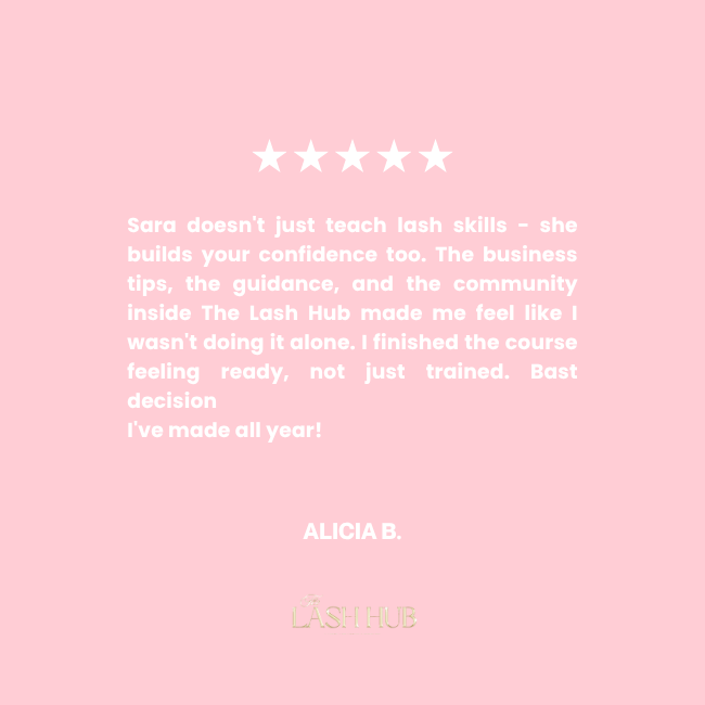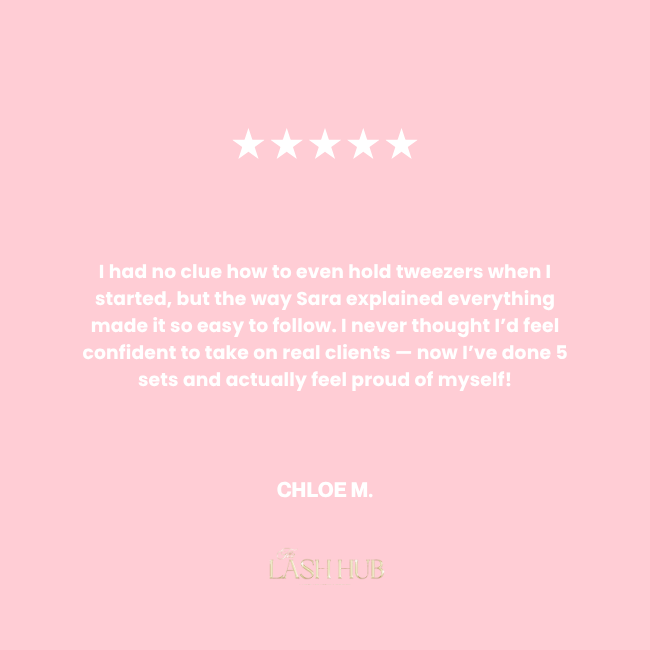 We cover lash fundamentals, safety, application techniques, client care, business setup, and more — all in clear, beginner-friendly language with ongoing support so you never feel lost.